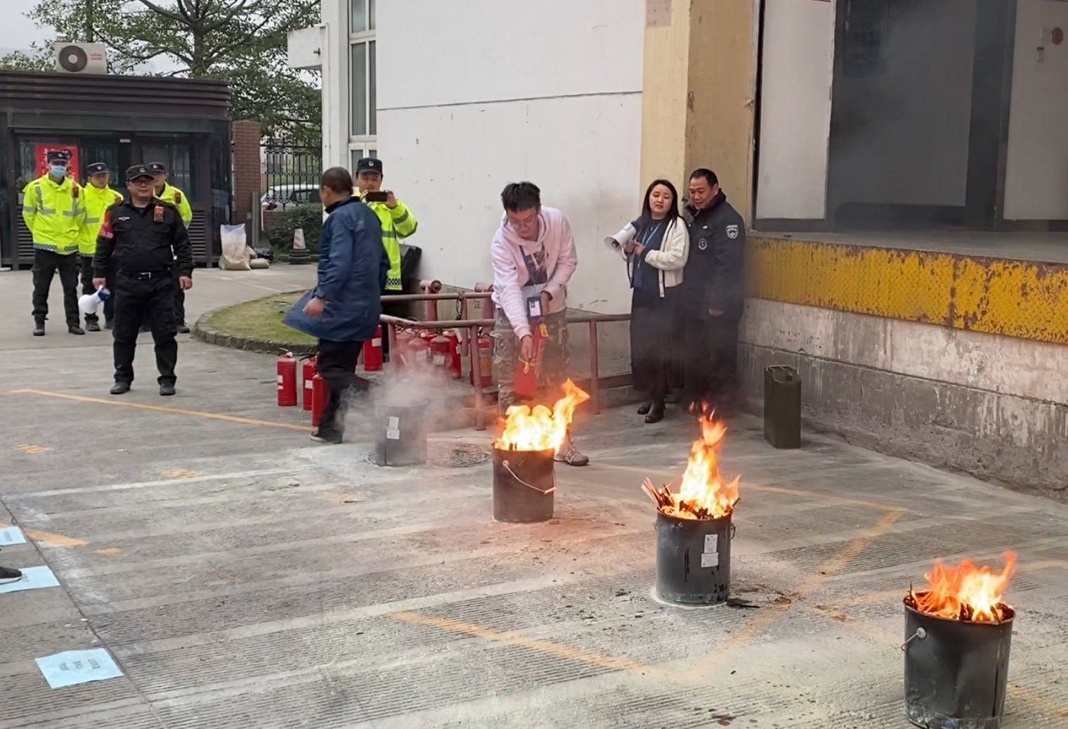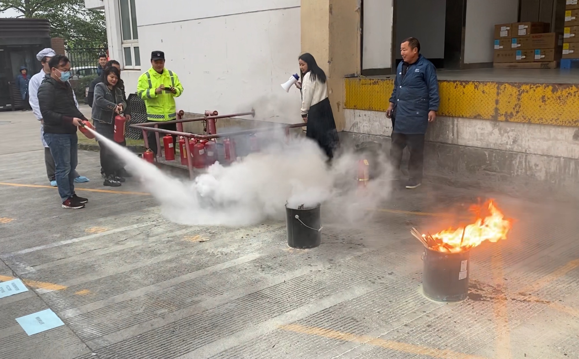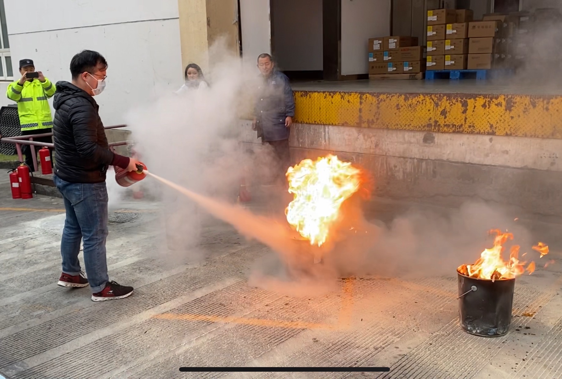 員工們?cè)谕瓿蓪W(xué)習(xí)、掌握滅火器的使用技能后,紛紛上前進(jìn)行演示。