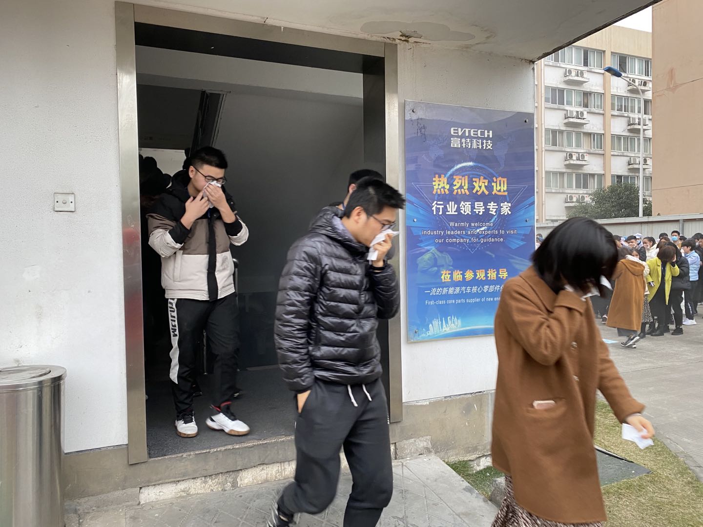 隨著警報(bào)響起,員工們紛紛有序地從辦公區(qū)域向指定安全區(qū)域轉(zhuǎn)移。