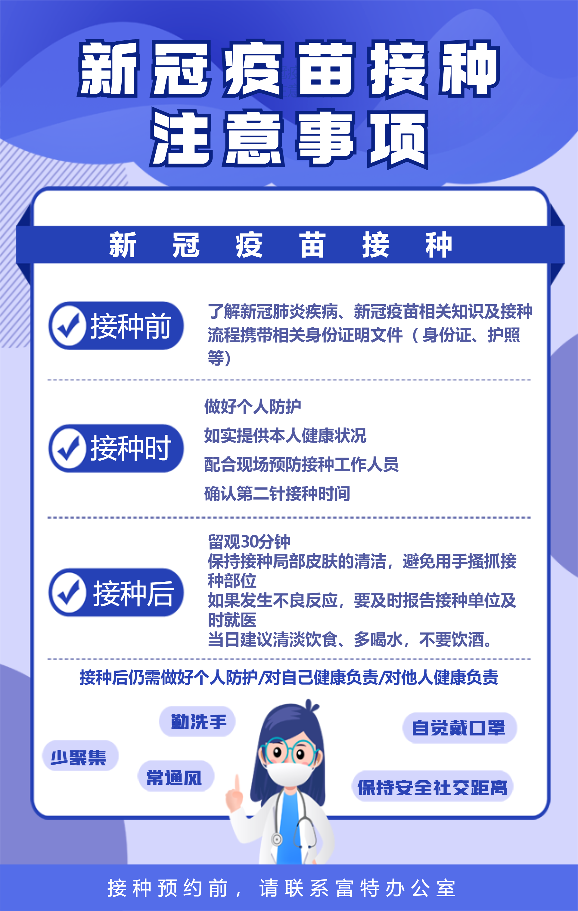 疫苗的接種預(yù)約及接送服務(wù),通過(guò)各部門(mén)內(nèi)勤伙伴統(tǒng)一提報(bào)給辦公室-徐雯即可,她將會(huì)大家做好相關(guān)事宜的安排!