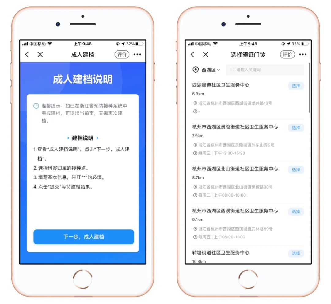 查看建檔說(shuō)明,選擇領(lǐng)證門(mén)診。(可在搜索欄輸入對(duì)應(yīng)接種證申領(lǐng)門(mén)診名稱(chēng)進(jìn)行關(guān)鍵詞搜索)