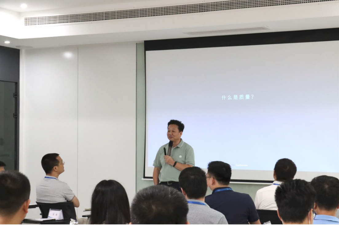 參觀結束進入質量課題講座環節,蔚來執行副總裁沈峰先生為大家帶來一席豐富的精神盛宴。質量是信仰,蔚來追求的質量是“生活方式的改變”,是對“超越期待的全程體驗”的執著。