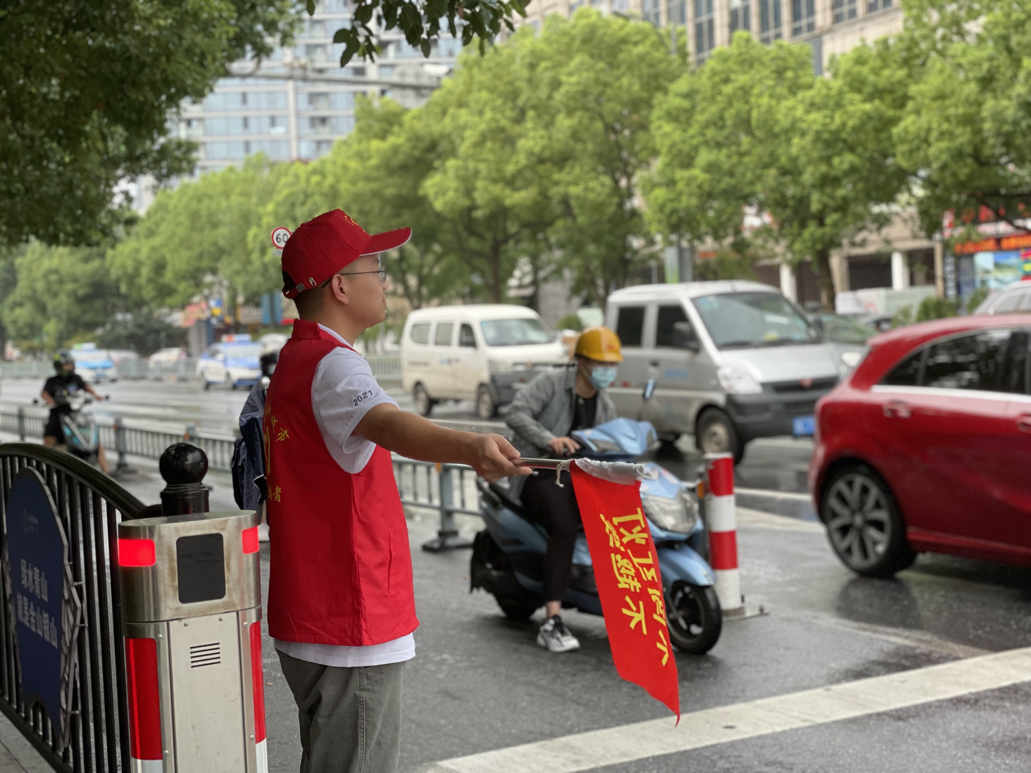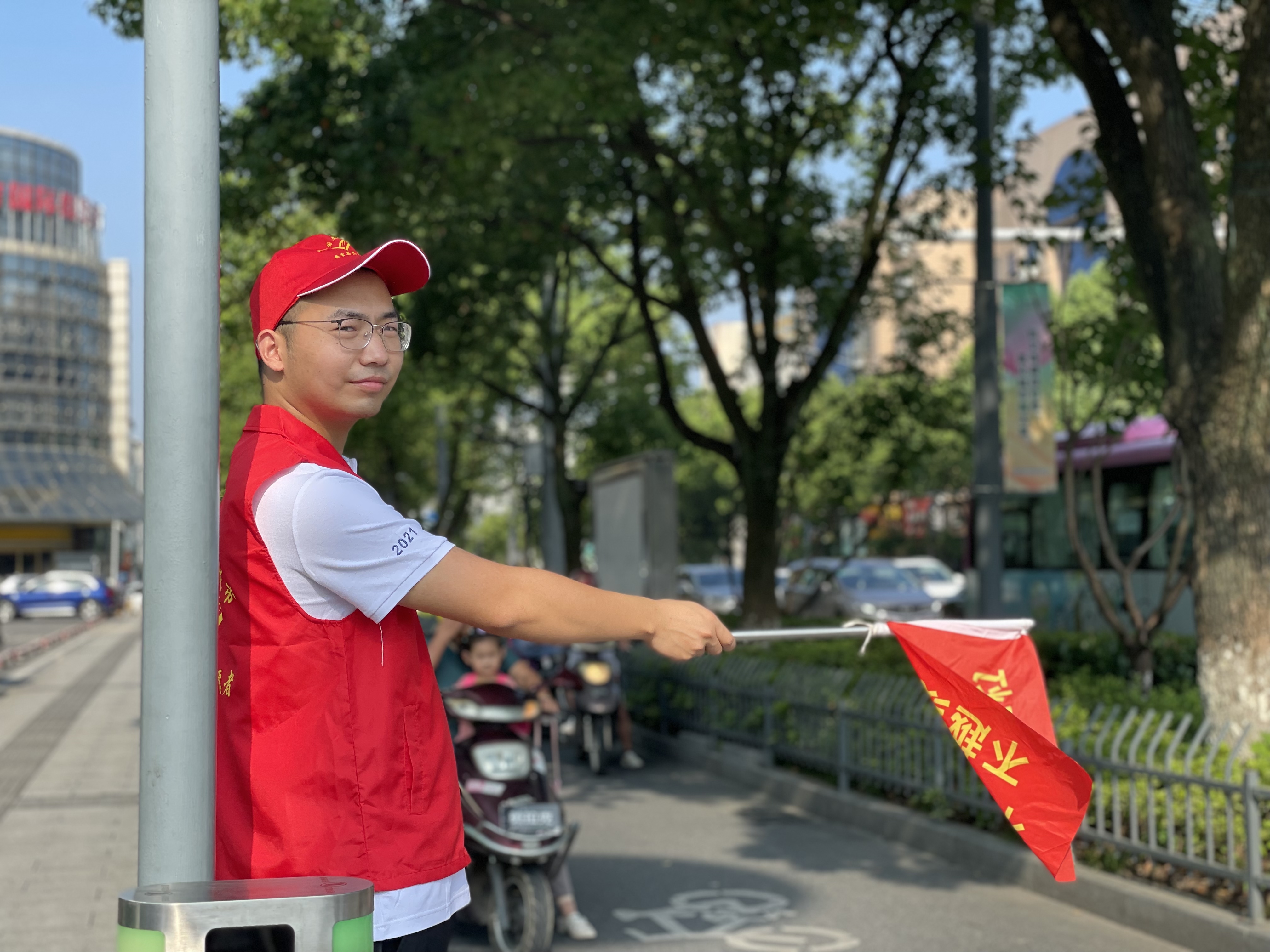 上午的安吉,天氣炎熱、陽光刺眼,志愿者們卻站的筆直、面帶微笑。他們說紅色的志愿馬甲穿在身上的時(shí)候,就代表著身上肩負(fù)著保衛(wèi)城市的使命感與作為富特人的社會(huì)責(zé)任感。